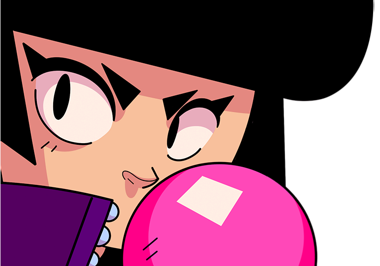 이 궁극기는 맵에 따라서 효율이 급격히 달라지는데 벽이 없는 맵에서는 풍선껌을 두방 이상 맞는게 쉽지않아 효율이 떨어진다. 하지만 벽이 많은 맵에서는 효율이 높아지는데 벽과 벽사이에 있는 상대 브롤러에게 풍선껌을 날리면 순식간에 제거가 가능하고 궁극기가 빨리차는데다 중복이기 때문에 연속으로 풍선껌을 날릴수 있어서 좋은 성능을 발휘 할수있다. 궁을 한번 발사하면 다시 궁이 차고 다시 한번 궁을 발사하면 순식간에 쇼다운이 되는 진풍경을 볼 수 있다