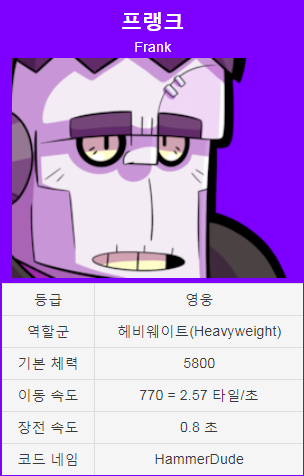 돌진기가 없기 때문에 다른 탱커형 브롤러들보다는 저평가 되는 편.
