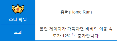 스타 파워와 마찬가지로, 효과는 홈런 공격의 선딜레이 동안에도 유지된다.