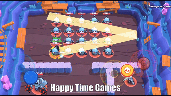 Bibi's Super sends out a longranged bubble that can pierce through enemies and bounce off of walls.
